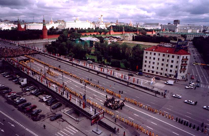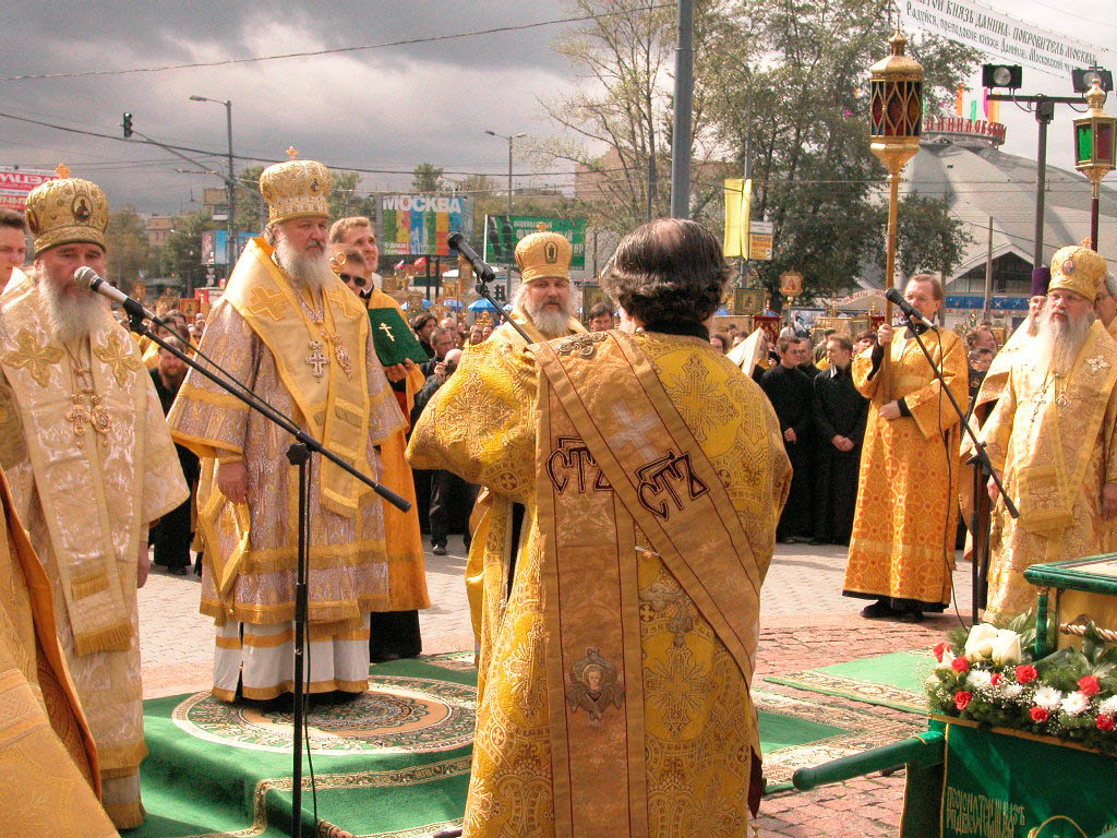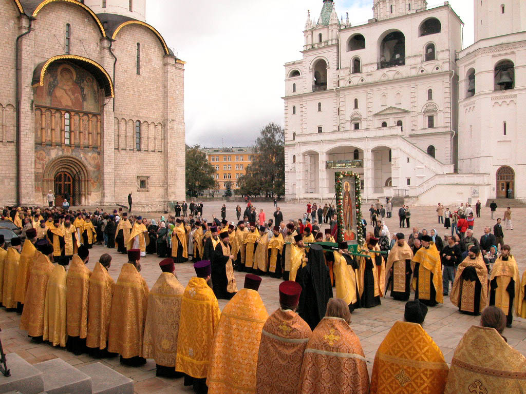 На Соборной площади Кремля Предстоятель Русской Православной Церкви благословил крестный ход, направившийся от Успенского собора к памятнику святому благоверному князю Даниилу Московскому на Даниловской площади. При исходе молитвенного шествия из Боровицких ворот Кремля к нему присоединились крестные ходы от Храма Христа Спасителя и других приходов столицы. Всего в процессии участвовало около четырех тысяч человек.