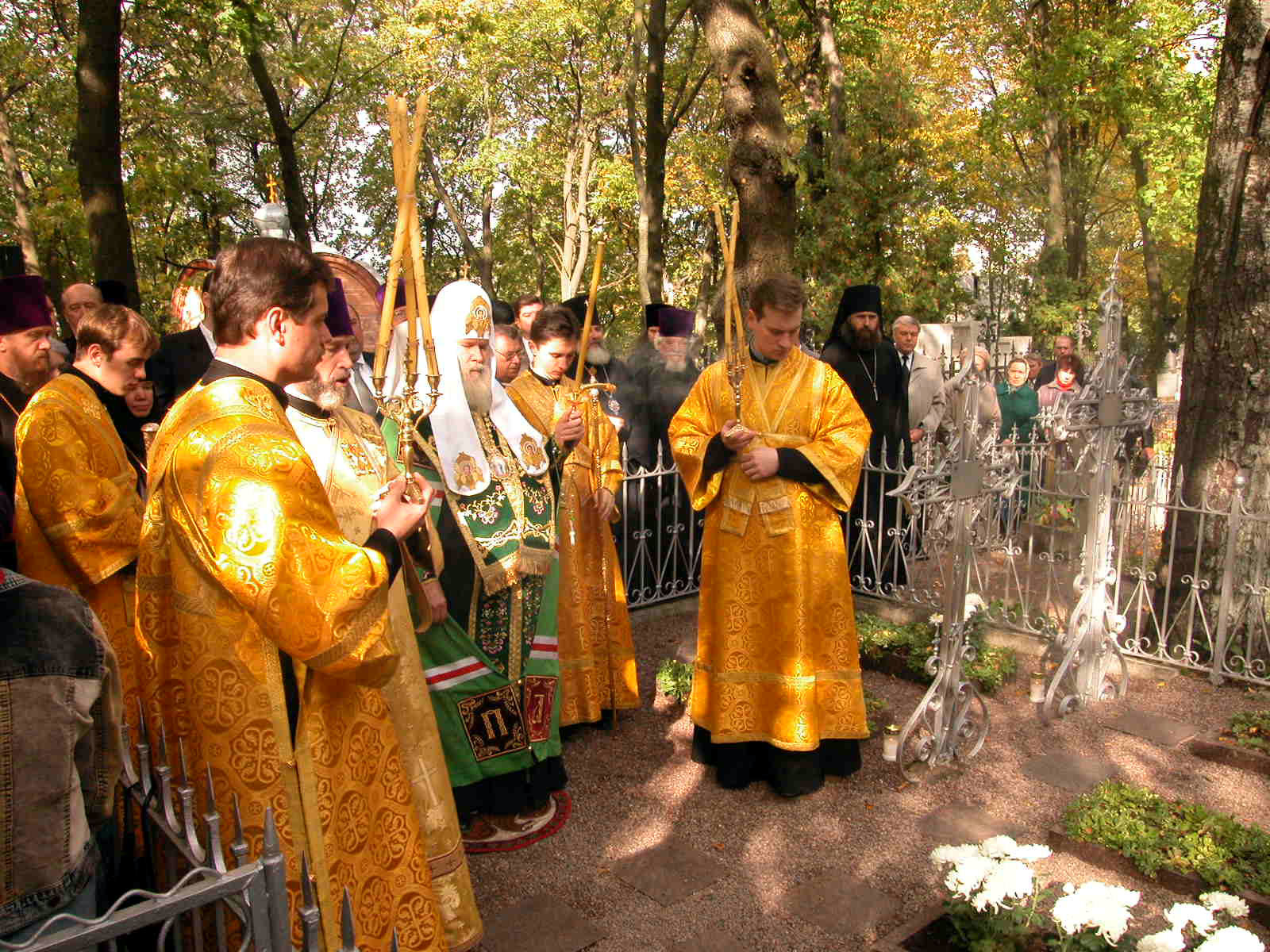 После молебна Святейший Патриарх Алексий совершил панихиду на могилах своих родителей — протоиерея Михаила и Елены Иосифовны, похороненных на Александро-Невском кладбище. На этом кладбище упокоены и другие предки Патриарха по линии его матери.