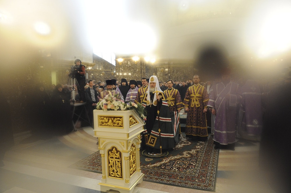 Святейший Патриарх напомнил, что когда начиналось строительство собора Христа Спасителя в Калининграде, многие не верили, что задуманное удастся воплотить. «Но когда были воздвигнуты сии святые стены и к небу калининградскому взметнулись пять куполов с позолоченными крестами, мы возблагодарили Господа за великое чудо, которое Он нам явил. Храм стоился в тяжелейшие годы не того кризиса, которого мы сейчас все так боимся, а полной национальной разрухи, когда была сломана экономика; когда огромные противоречия буквально вздыбливали народ в конфликте, который приближался к гражданскому противостоянию; когда многие не верили, что Россия встанет с колен. В тех условиях мы стали строить этот храм и то, что он был возведен, − великое чудо».