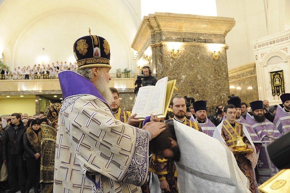 За богослужением Святейший Патриарх Кирилл рукоположил Сергия Гриднева во диакона.