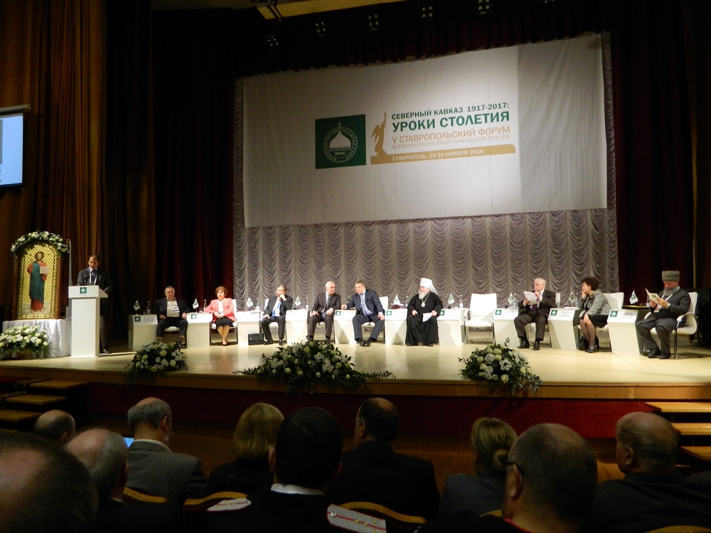 Le Ve forum du Concile mondial du peuple russe avait lieu du 29 au 30 novembre 2016 à Stavropol, autour du thème : « Le Caucase du Nord, 1917-2017 : les leçons de l’histoire ». L’évènement rassemblait plus de 700 participants, parmi lesquels des représentants des autorités publiques, du monde scientifique, d’enseignants, de leaders spirituels ou publics, ainsi que des invités venus de l’étranger proche ou lointain.