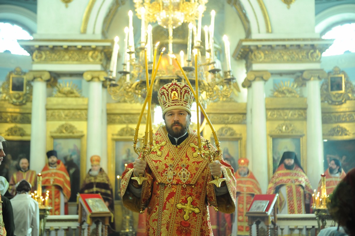 Και παρόλο που η σωτηρία έλαμψε από την Ιερουσαλήμ και Ιερουσαλήμ ήταν εκείνη, η οποία δέχθηκε πρώτη την είδηση για την Ανάσταση του Χριστού και έλαβε πρώτη την άφεση αμαρτιών, αυτή η είδηση απλώθηκε σε όλη την ανθρωπότητα. Και σήμερα δεν έχει σημασία, που ευρίσκεσαι γεωγραφικά, διότι η χάρη του Θεού ενεργεί παντού και σε κάθε Ναό είναι παρών ο Κύριος με την πληρότητα της χάριτος και της δύναμης Αυτού. Σε κάθε χριστιανικό ναό σε ανάμνηση του Κυρίου Ιησού Χριστού τελείται η Θεία Ευχαριστία, όπου ο άρτος και ο οίνος μεταβάλλονται σε Σώμα και Αίμα Χριστού. Ο άνθρωπος μπορεί να έρχεται σε οποιοδήποτε Ορθόδοξο Ναό, να μεταλαμβάνει των Αγίων του Χριστού Μυστηρίων, να ενωθεί πνευματικά και σωματικά με τον Θεό, να ανανεωθεί πνευματικά και να γίνει Ναός του Θεού, όπως Ναοί του Θεού και κατοικητήρια του Θεού του Ζώντος αναδείχθηκαν πολλοί άγιοι από αιώνων ευαρεστήσαντες τον Θεό», ανέφερε χαρακτηριστικά ο Μητροπολίτης Ιλαρίωνας.
