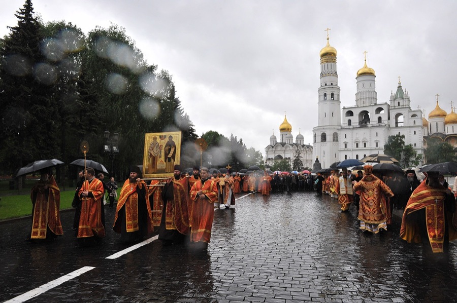 24 мая 2009 года, в день памяти святых просветителей славян – равноапостольных братьев Кирилла и Мефодия – по завершении торжественного богослужения в Успенском соборе Московского Кремля от храма начался крестный ход.