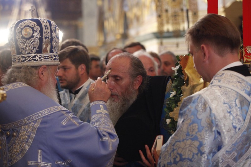 Во время чтения канона на утрени Святейший Владыка помазывал богомольцев святым елеем.