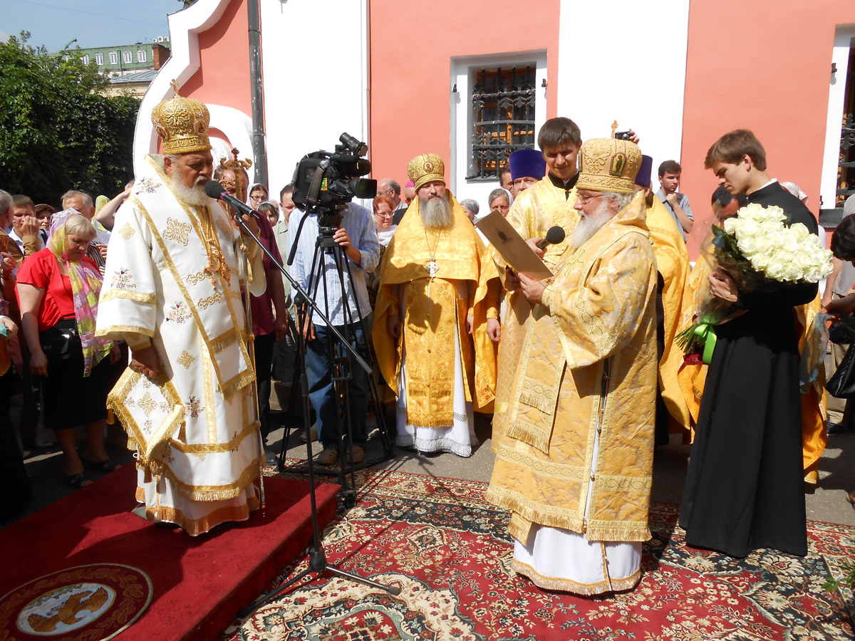Архиепископ Истринский Арсений тепло поздравил настоятеля Подворья с престольным праздником и с 35-летней годовщиной его представительского служения в Москве и огласил поздравительный адрес Святейшего Патриарха Московского и всея Руси Кирилла. В ответном слове архиепископ Нифон сердечно поблагодарил собравшихся, отметив, что годы его служения в Москве наполнены любовью к народу России, который ныне переживает духовное возрождение.