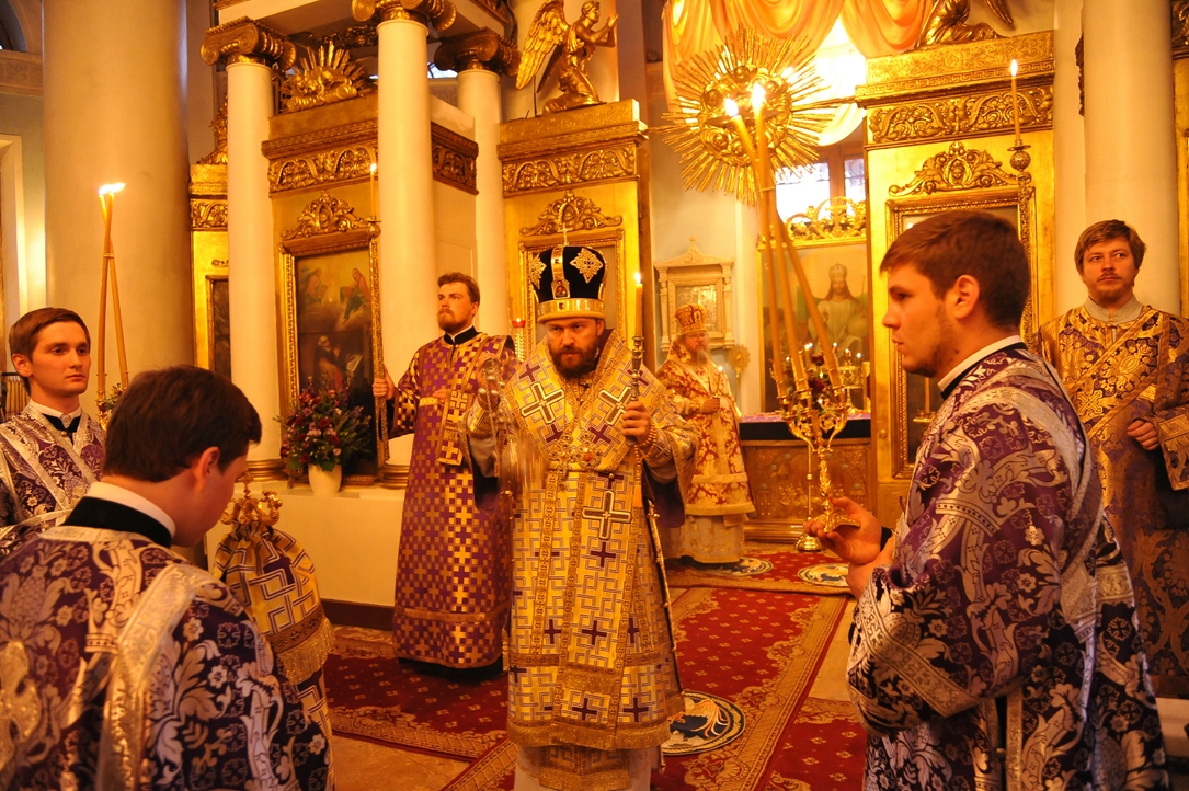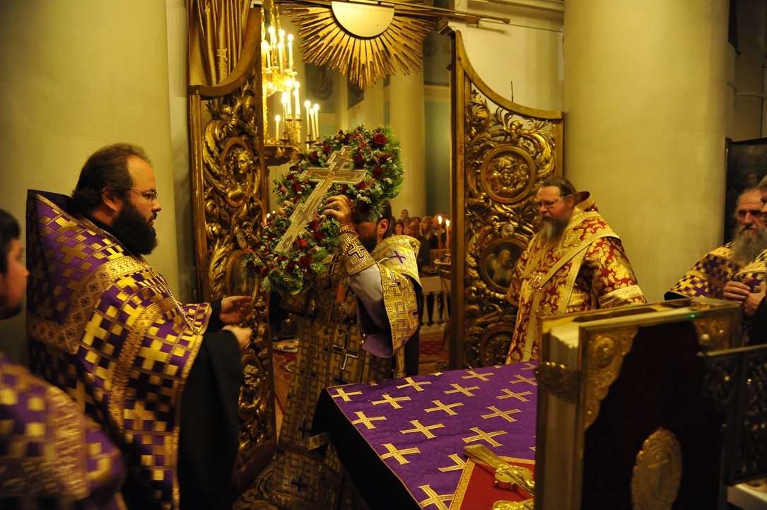 После великого славословия владыка Иларион совершил чин воздвижения Креста.