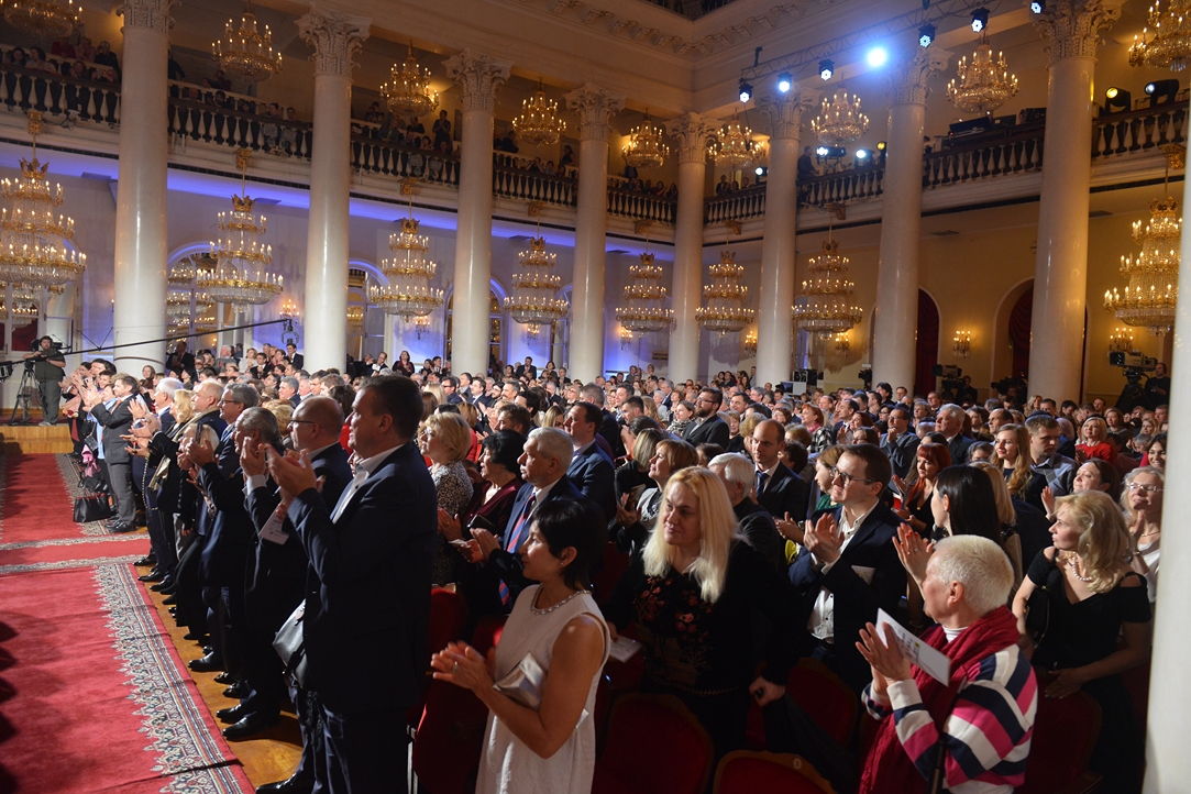 Перед началом концерта В.И. Федосеева приветствовал министр культуры Российской Федерации В.Р. Мединский. «В этом году Владимир Иванович вот здесь, стоя у дирижерского пульта, дал 66 концертов, нынешний – шестьдесят седьмой. Вы можете себе представить более активно выступающего руководителя, дирижера, мастера? Это просто потрясающе», – сказал В.Р. Мединский, поблагодарив дирижера за его вклад в формирование культурного пространства и музыкальной жизни, пожелав Владимиру Федосееву вдохновения и всего самого доброго.